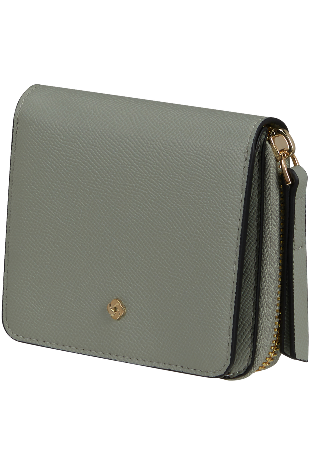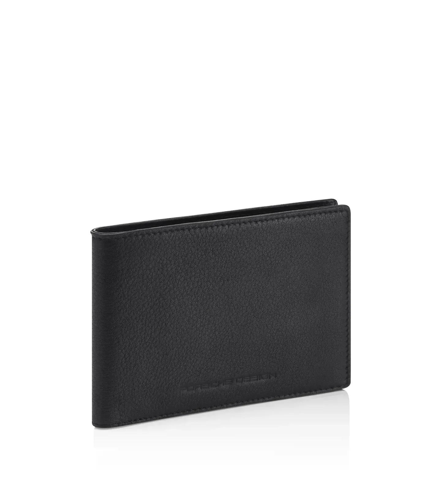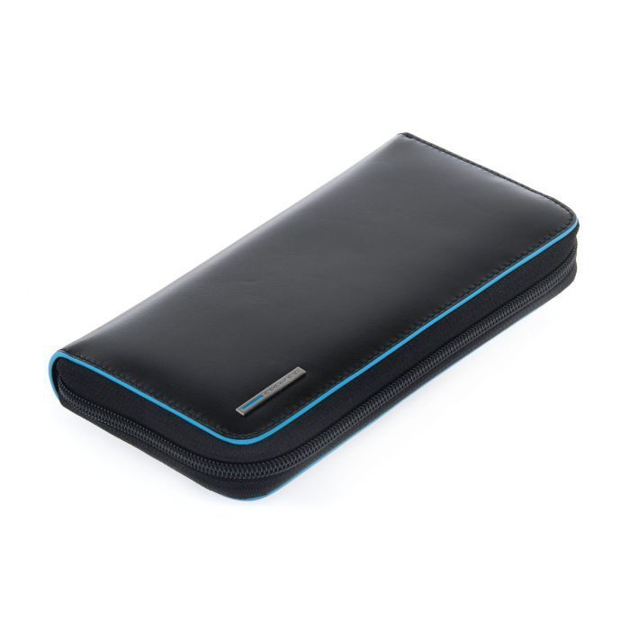 Portafoglio piccolo in pelle testurizzata. Ottima organizzazione degli interni con numerosi vani porta carte di credito e tasca porta monete con zip. Arricchito da logo metallico frontale.